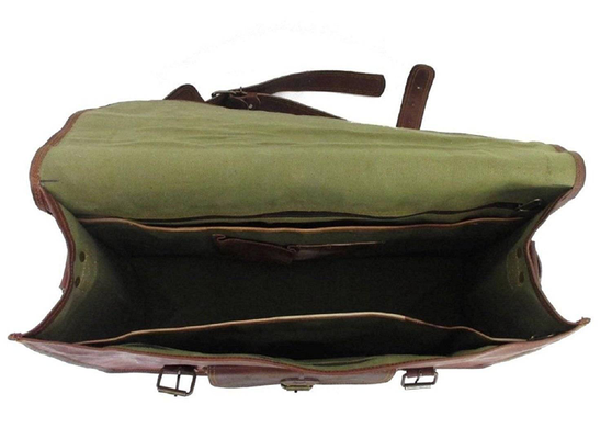 Craftshades – 15″ Handcrafted Canvas+Leather Laptop Bag (Brown) | 100% Genuine Leather