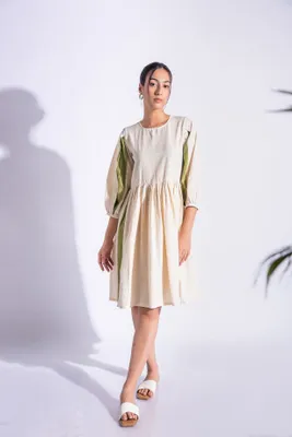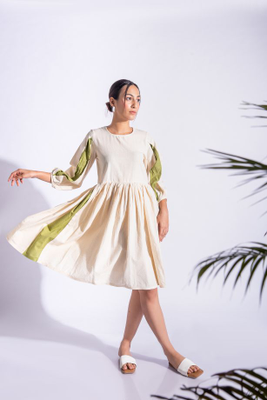 Introducing our exquisite cream and green handmade midi dress, designed to elevate your style while embracing sustainability. Crafted with utmost care, this dress is made from 100% cotton fabric, ensuring comfort and breathability. Its timeless midi length exudes elegance, perfect for any occasion. With its sustainable production process, you can feel good about your fashion choices. Whether it's a casual outing or a special event, this dress is versatile and chic. Shop now and experience the blend of fashion and sustainability.