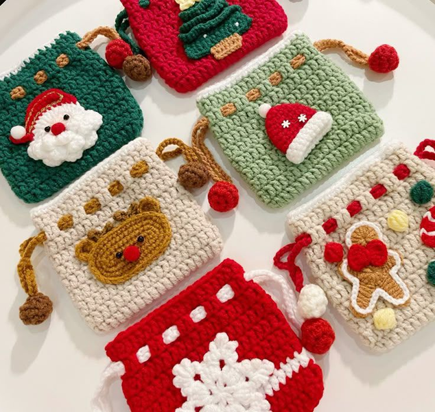 Crochet Christmas Theme Mini Pouch