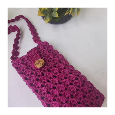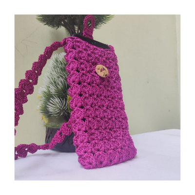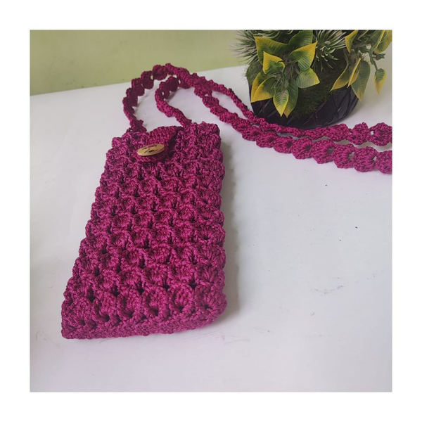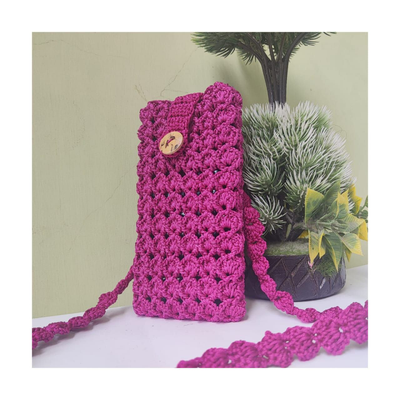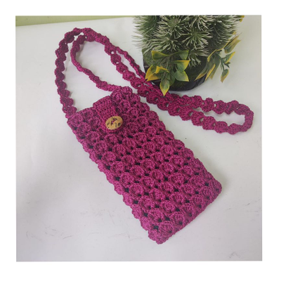 - Features - Crochet Mobile Pouch Rosy pink colour Thin cord material Handmade