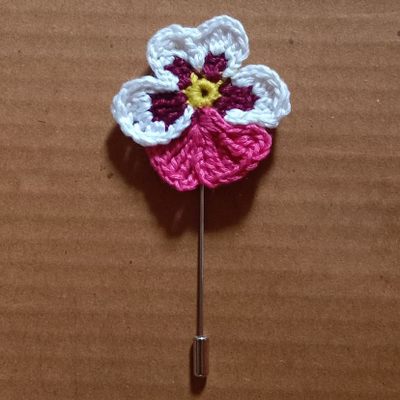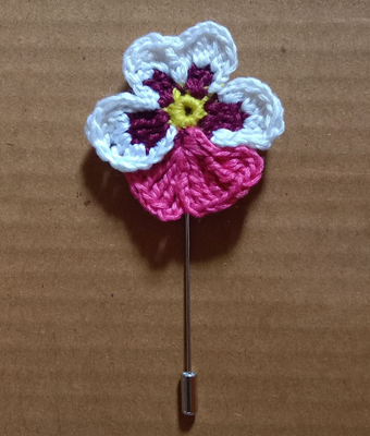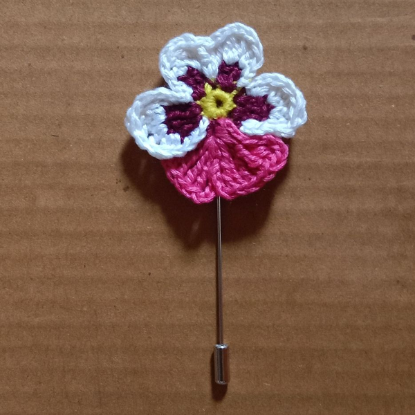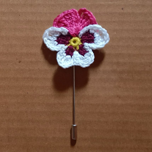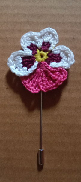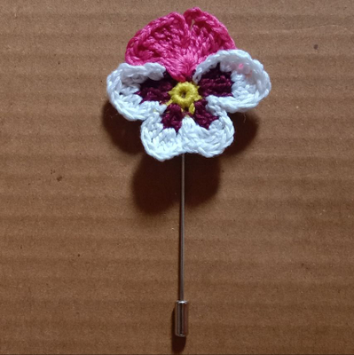 Handmade Designer Crochet Pansy Flower Lapel Pin/Brooch.