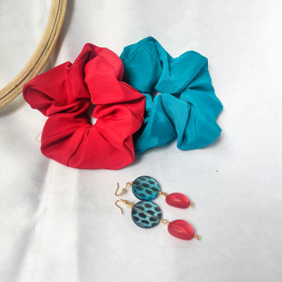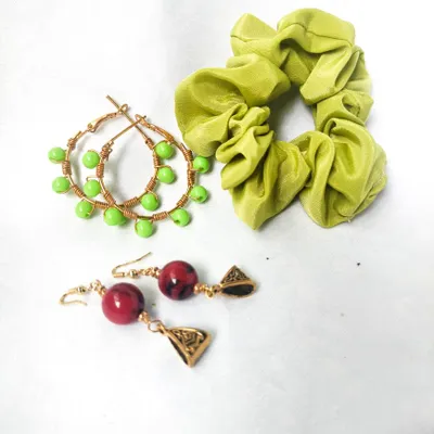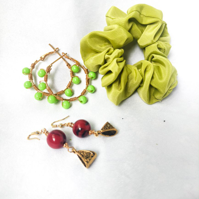 • Package Includes - red ♥️ combo pack 2 scrunchies 1 pair earring green 💚 combo pack 1 scrunchie 2 pair earrings