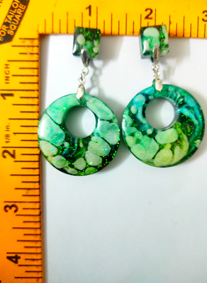 A pair of handcrafted luxury earrings which are a style statement. These are dangle earrings with push back post backs. These earrings are made with resin and alcohol inks. The alcohol inks give an interesting effect to resin thus making these earrings a stunning piece. They have a glossy glittery finish and can be paired with both Indian and Western wear.