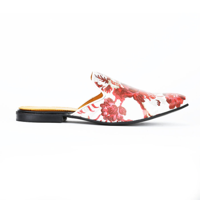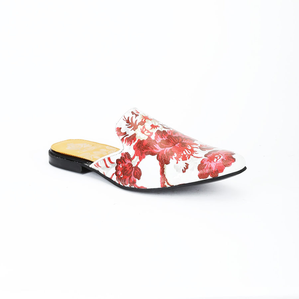DEL MONDO WHITE LEATHER WITH RED COLOUR FASHION MULE