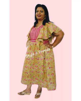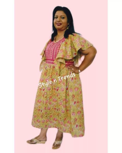 Design No- 112, Jaipur Print Cotton Dress With Frill Sleeves