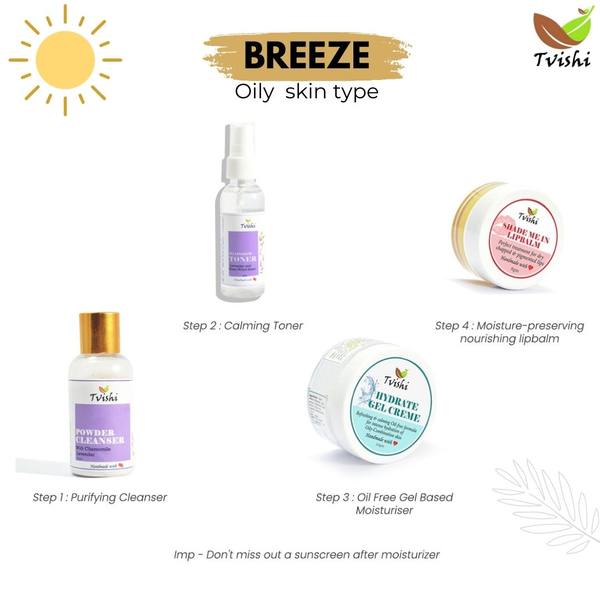 - How to use - Morning Ritual Step 1 : Cleanse with Powder cleanser Step 2 : Tone with Blossom Toner Step 3 : Moisturise with Hydrate gel crème Step 4 : Nourish lips with Shade me in Lipbalm Night Ritual Step 1 : Cleanse with Powder cleanser Step 2 : Tone with Blossom Toner Step 3 : Repair with Nakshatra Glow Serum Step 4 : Nourish lips with Shade me in Lipbalm Twice a week Ritual Step 1 : Detox with GoGreen clay mask. Wash off Step 2 : Tone with Blossom Toner Step 3 : Repair with Nakshatra Glow serum
