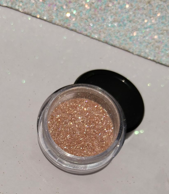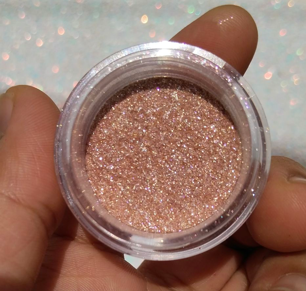 It's a beautiful biege shade shimmery loose sparkle pigment with multi colour reflections in it. It looks best on dark base.