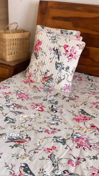 Pack content-One bedsheet with 5 quilted cushion covers and 2 bolster covers