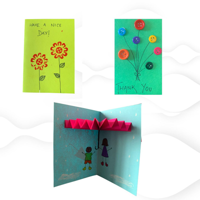 A fun-filled DIY greeting card kit that will enable your child to make 6 different types of greeting card. Block Printing, String Art, Hand print(finger print) cards, origami folding and cutting cards, Button Art. 6 different crafts, one kit to experience them all Contents of the box: 6 coloured greeting card(plain), 6 paint pots, Brush, Sketch Pen, String, 10 buttons, Sponge, Traditional Wooden Block, 3 Origami Sheets, Glue, Instruction Sheet. Whatever the occasion, your child will be ready with a wonderful greeting card Best for Father's day, Mother's day, Birthday's , Return gifts, Grandparents day, Teachers day and other such special occasions. Greetings for any season!