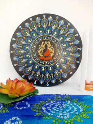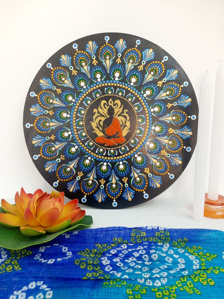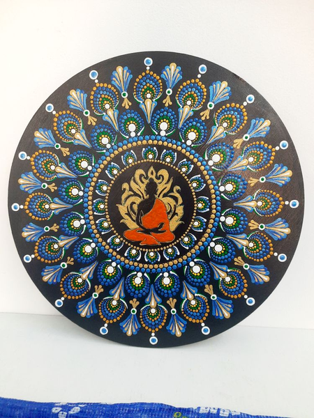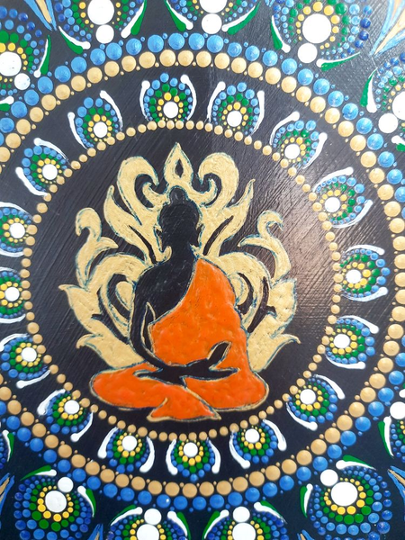 Peaceful Buddha and peacock feather dot mandala made with love ❤️