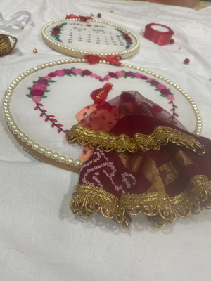 - Material - wooden ring, Anchor threads , silk thread, beads , cotton fabric