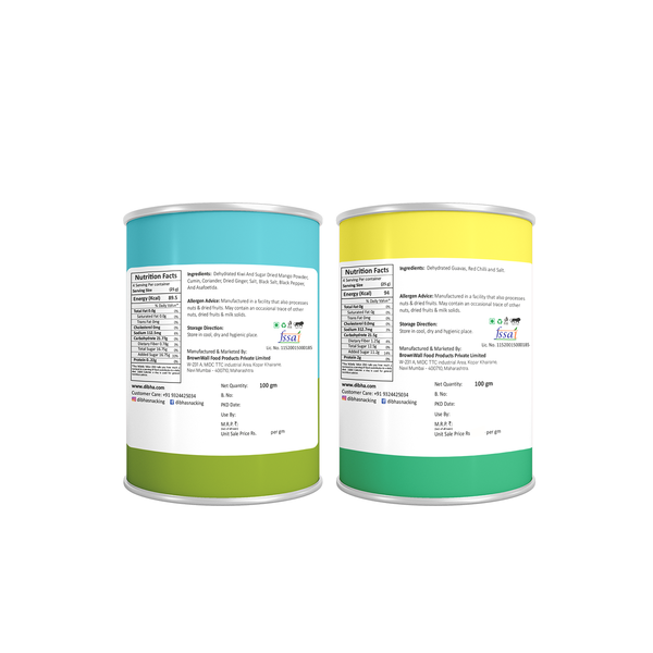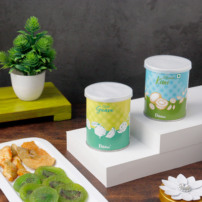 Indulge in the unique flavors of DIBHA Honest Snacking Dried Masala Kiwi & Chilli Guava Pack. This pack of two offers a blend of sweet and tangy dehydrated tropical fruits that are both delicious and nutritious. With a total weight of 200g, these premium dried fruits provide a convenient and satisfying snack option. Packed with dietary fiber, natural antioxidants, and a balance of flavors, this snack is perfect for those seeking a healthier alternative that doesn't compromise on taste. Suitable for all ages and ideal for on-the-go snacking.