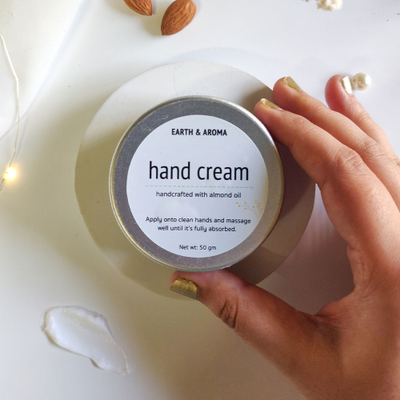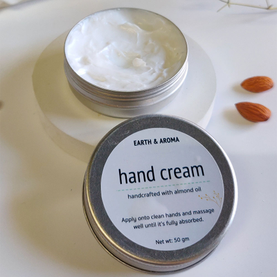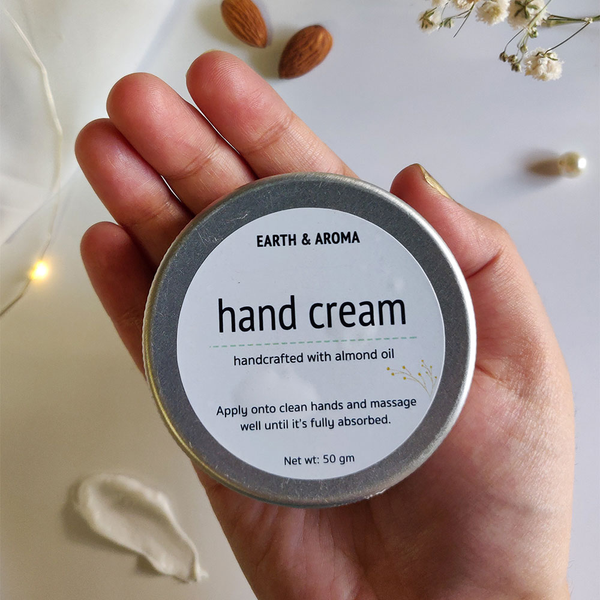 EARTH & AROMA Hand Cream 50gm, Enriched with almond butter| Helps with dry hands, No Artificial fragrance