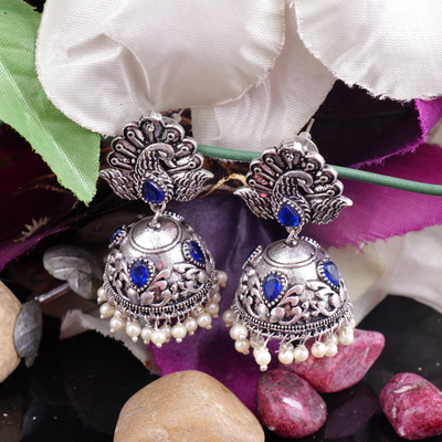 Eivri Jewellery Earrings for Women Afghani Oxidised Silver Jhumka earrings for Girls and Women