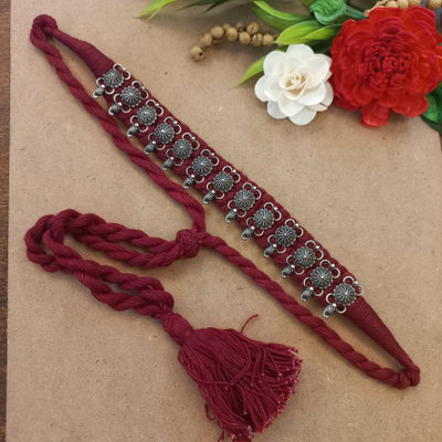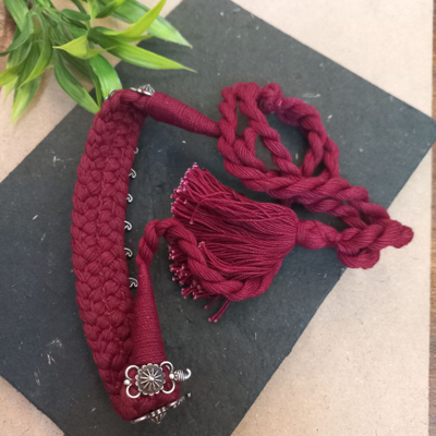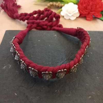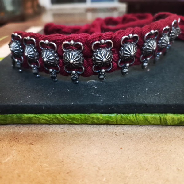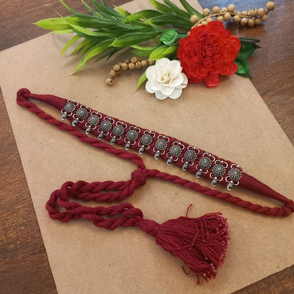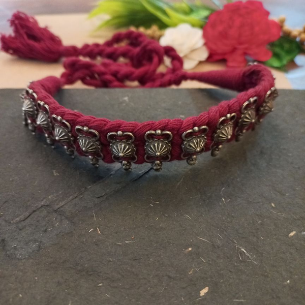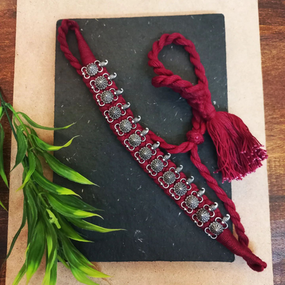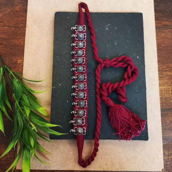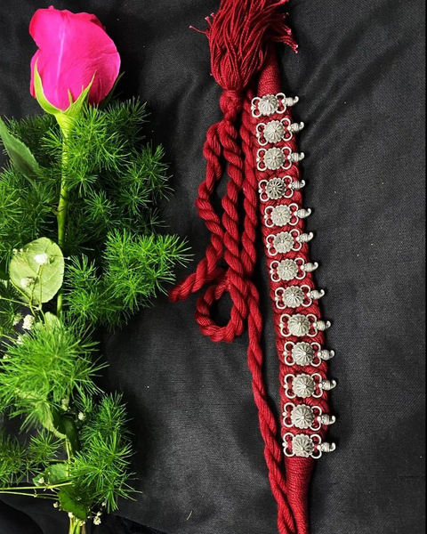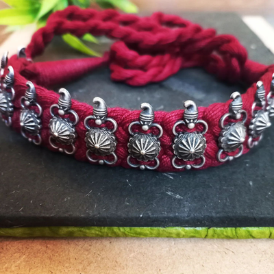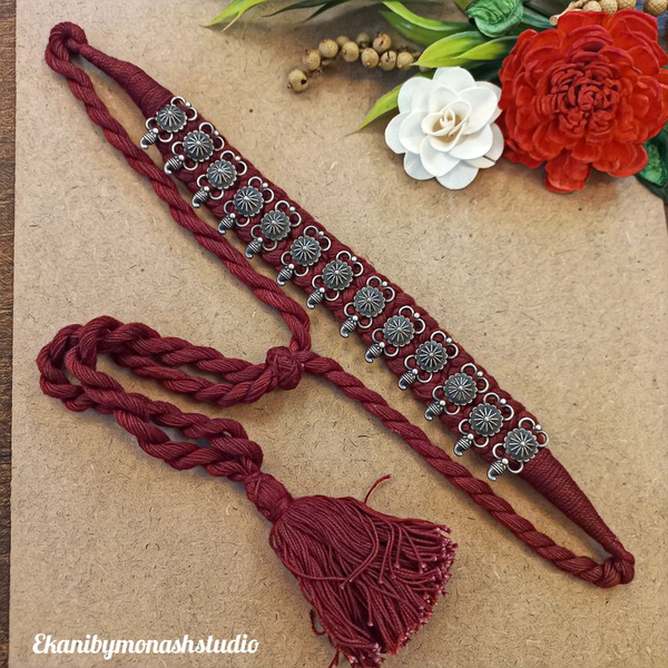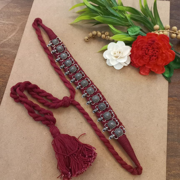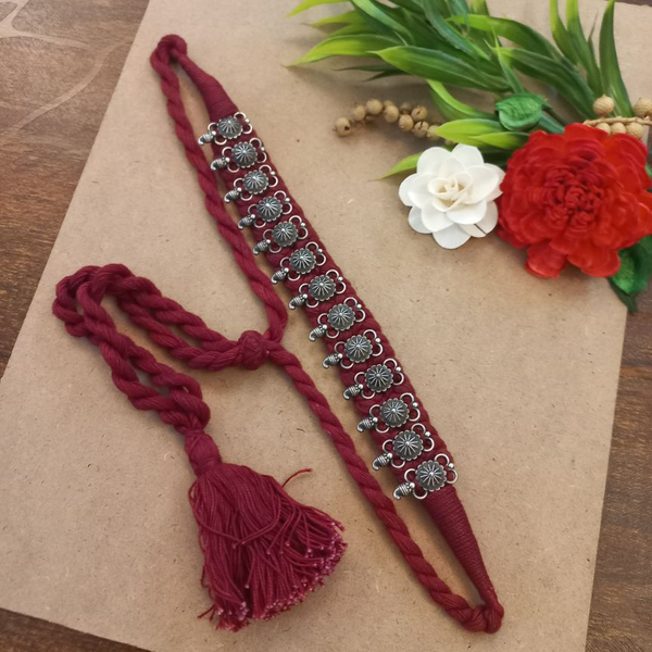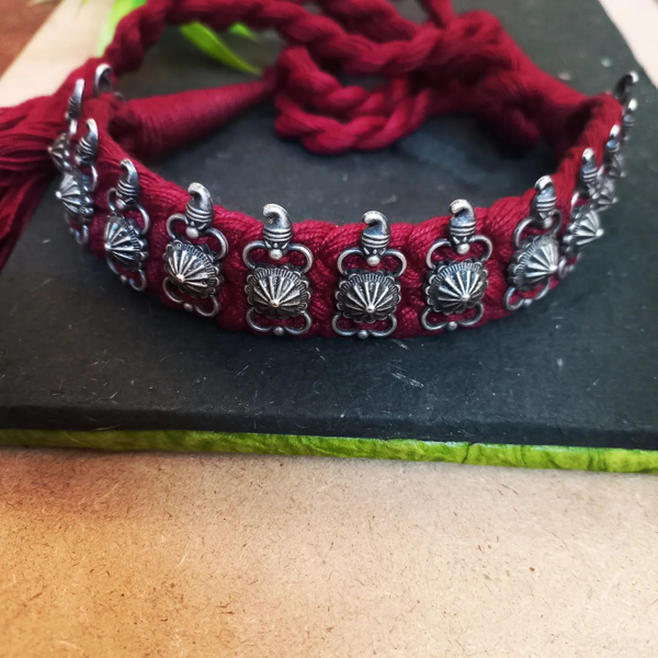 Ekani Amunuk Premium Brass Made Silver Mehroon Tarsel Choker Necklace For Women