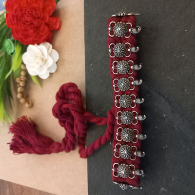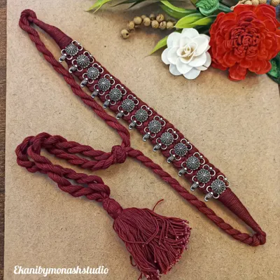🌷There always a soft corner for an effortless piece of jewelry like this one. It is crafted in pure brass featuring leaf motifs followed by an intricate floral design and adjustable mehroon handmade tarsel for added elegance🌷