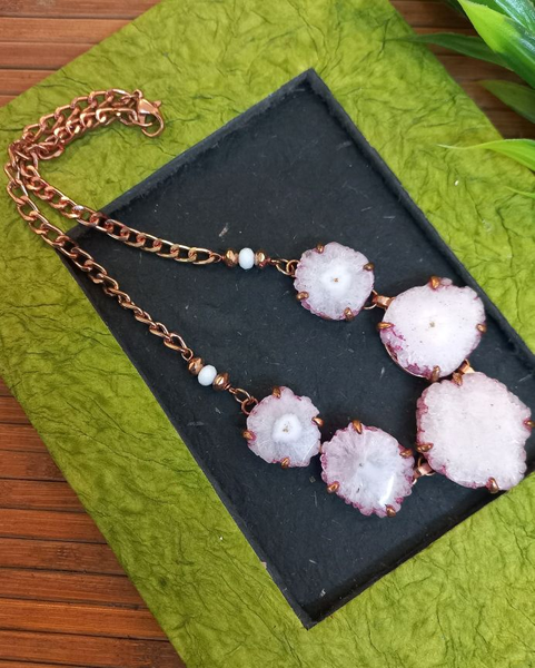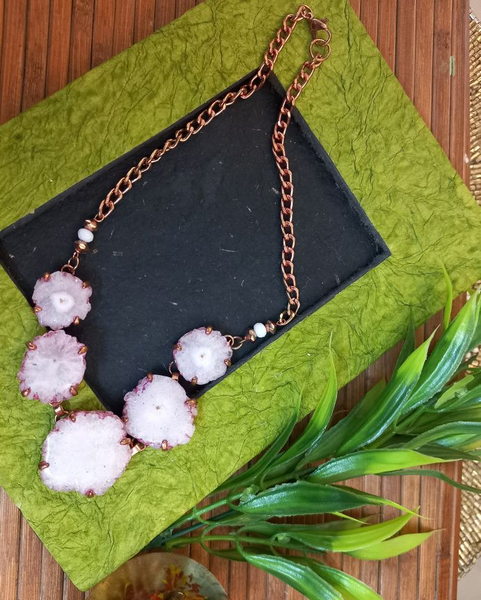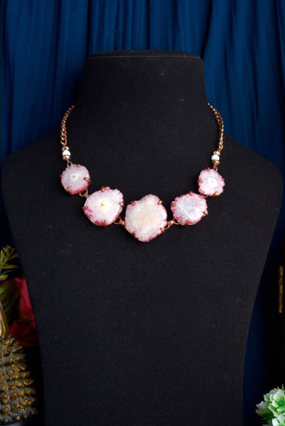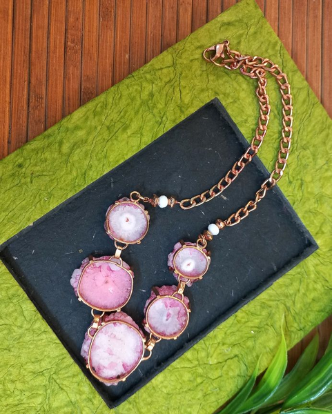 Meticulously designed by our kaarigars. Handcrafted designer PINK Color Brass Natural Druzy Agate Pendant, with Brass Chain Necklace. Traditional or modern, glam or subdued, with the quirks of love & war, each design by Ekanibymonashstudio brings the uniqueness and extraordinary styling statement.