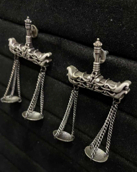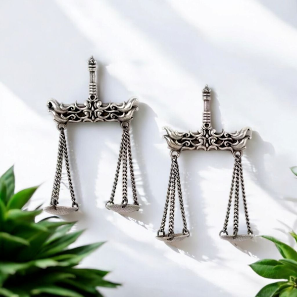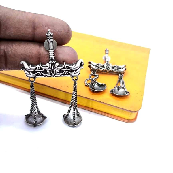 Ekani Tarazu Quirky Silver Lookalike Brass Earrings For Women