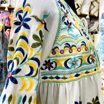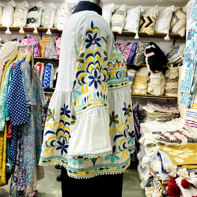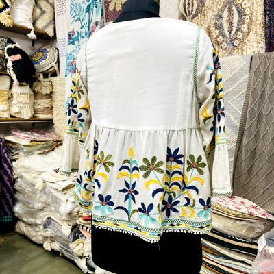 This is a Handmed item. The imperfections on this garment are not considered defects but characteristics which make it unique and authentgic.