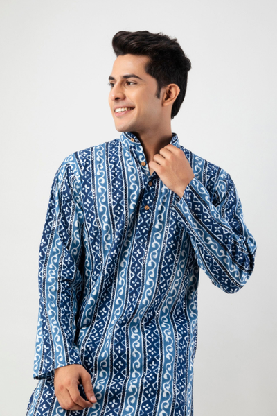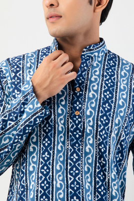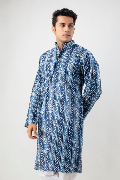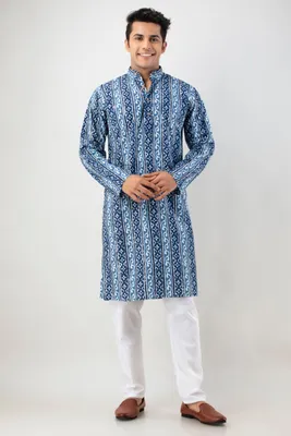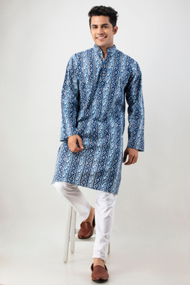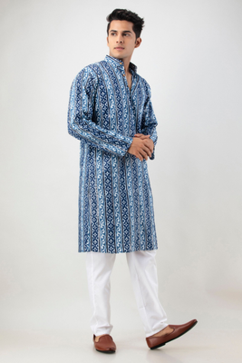 Firangi Yarn Cotton Mirror Work Wedding and Festive Wear Ethnic Printed Indigo Color Kurta