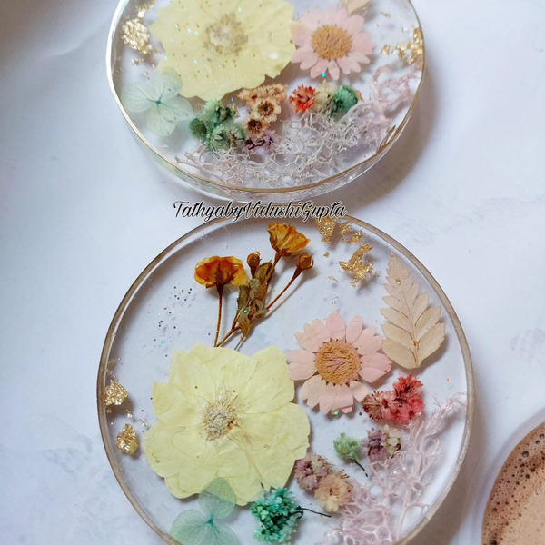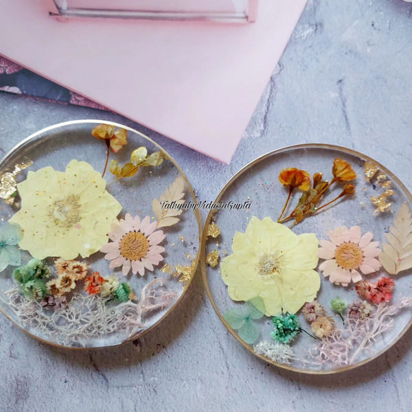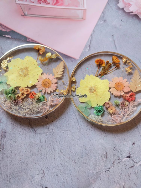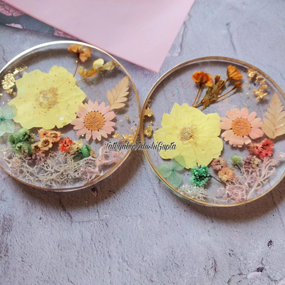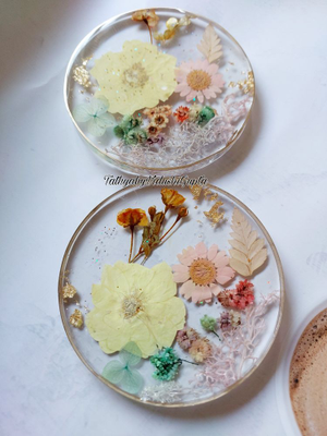 Elevate your tabletop with our exquisite Floral Resin Coasters, crafted with care using natural dried flowers in vibrant hues. 🌸✨ These coasters not only protect surfaces but also add a touch of nature's beauty to your space. Each piece is a unique blend of artistry and functionality, making it a perfect gift or a delightful addition to your home decor. Embrace the charm of nature with every sip.Bring a burst of botanical elegance to your