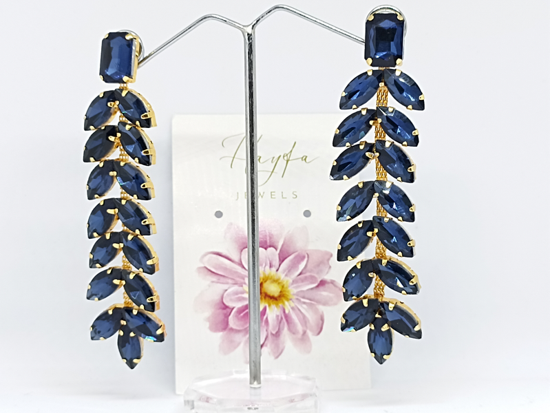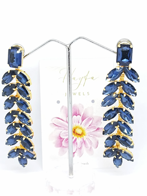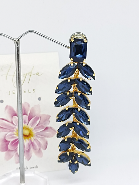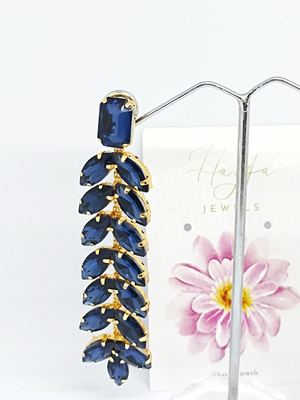 Blue Floral Crystal Modern Drop Dangler Earrings