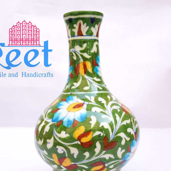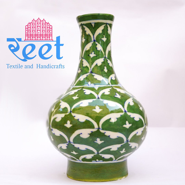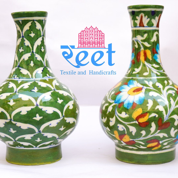 ABOUT BLUE POTTERY: Although it originated in ancient Persia, the art of blue pottery was brought to the craftsmen of Jaipur in the early 18th century. Blue pottery derives its name from the distinct use of Persian blue color. Indeed, the precise hand-painting under a transparent glazed surface, makes blue pottery stand out; but there is lot more to blue pottery than what meets the eye. It is the only form of pottery in the world which is made without the use of natural clay or mud. Instead, a special combination of powdered quartz, glass pieces and other minerals is used to make the clay-like mixture for making blue pottery. Interestingly, Jaipur’s blue pottery is also the only form of low-temperature glazed pottery which is made with a single firing process. These unusual attributes have earned Jaipur’s blue pottery a lot of fame in its own niche in the international market. The unique process and use of materials, makes Jaipur Blue Pottery rare in the world, but also make it extremely fragile and delicate.