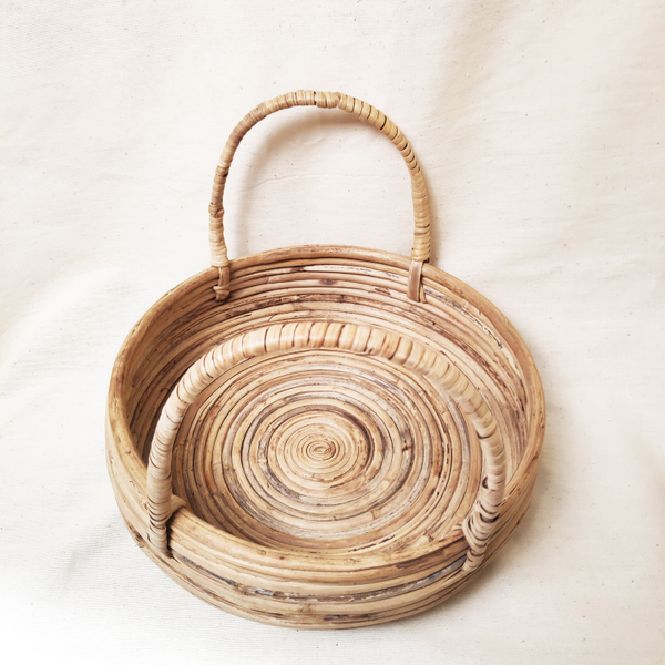 10" Round x 9" Height( including Handle) These Baskets are Hand-Crafted from the Cane and are Tough and Durable. Suitable for Placing Fruits, Flowers, Snacks, Vegetables, Office Stationery, Cosmetics, etc.