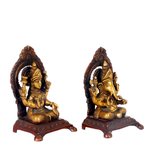 Ganesha Lakshmi Brass statue 7 inches copper finish