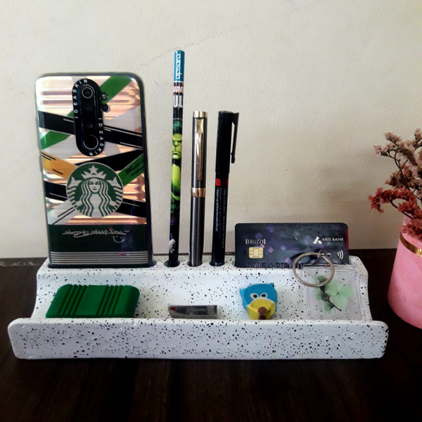 Introducing our sleek and functional Concrete Desk Organizer, the perfect addition to any workspace.