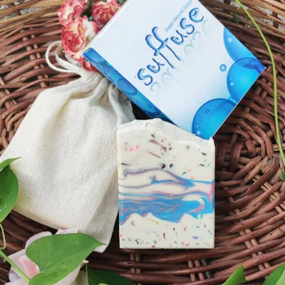 - Package Includes - 1 (one) Bar soap packaged in a box with a free drawstring cotton bag