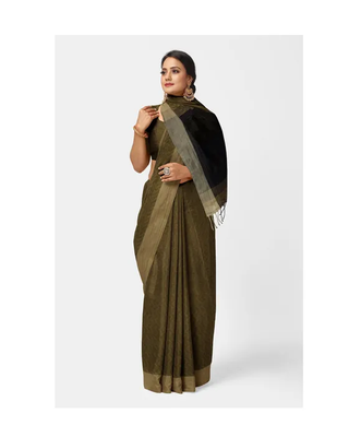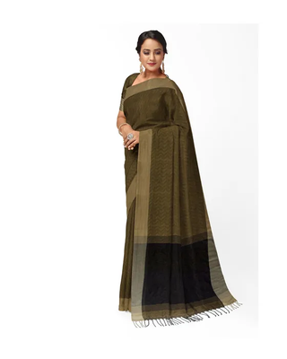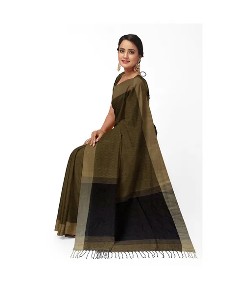 Gold Brown Handloom Cotton Saree with Shades of black on Pallu
