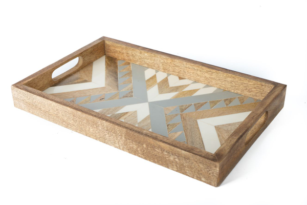 Made from sturdy mango wood - This gorgeous serving tray is great way to serve with elegance and style. Detailed with a resin pattern, they are perfect for all occassions(or non-occassions too!)