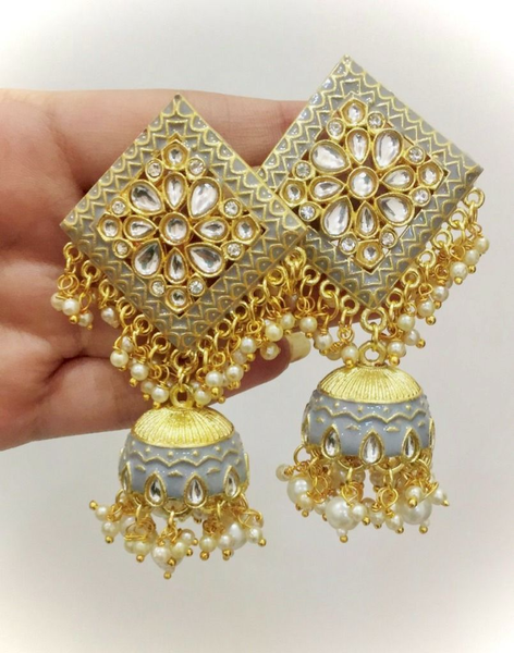 Grey Meenakari Fushion Earring