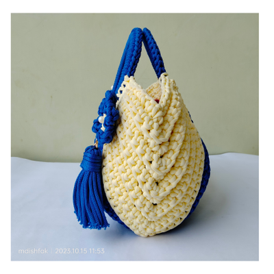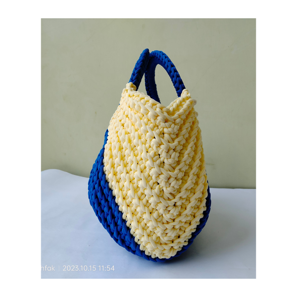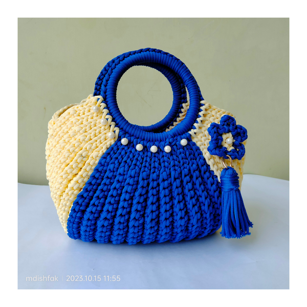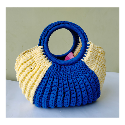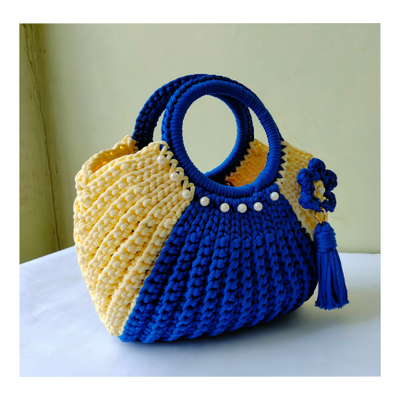 - Features - Crochet Handbags Royal Blue and Off white colour Handmade Cord Material Size - Length 30 cm , breadth 33 cm