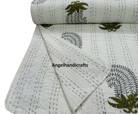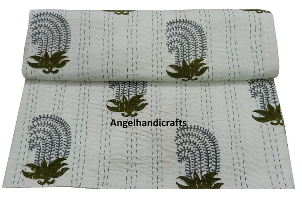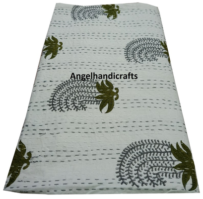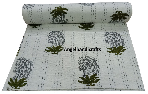 This Kantha bedcover is made of 100% cotton fabric by India’s rural artisan. It has two layers of fabric pieces stitched together with thousands of small & delicate fine running kantha stitches. It is a lightweight bedspread with an appealing design.