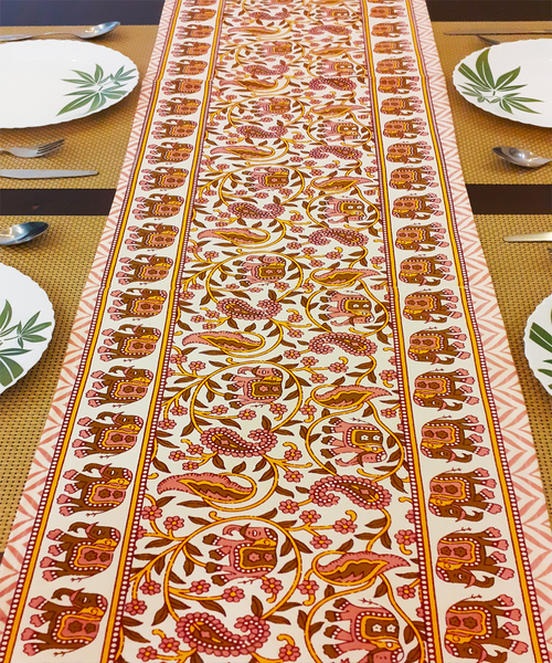 - Features - Add style and charm to your table settings with our expertly crafted vibrant hand-block printed table runner.