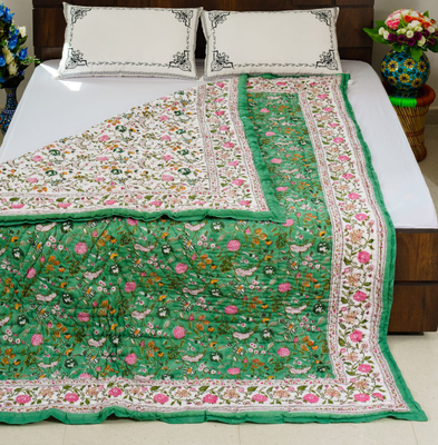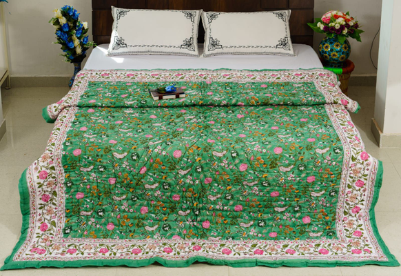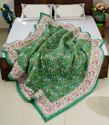 Hand block printed quilt export quality 100% cotton fabric & 100% natural cotton fill soft and warm beautiful quilt