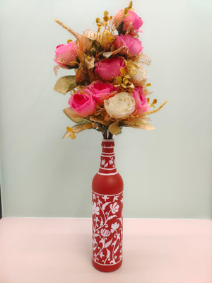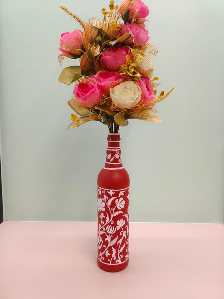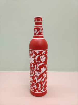 Hand painted on glass bottles. Can be used for decorative purposes, gifting etc.