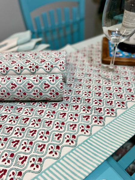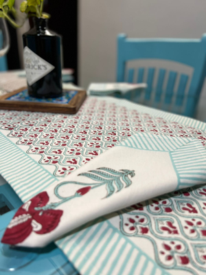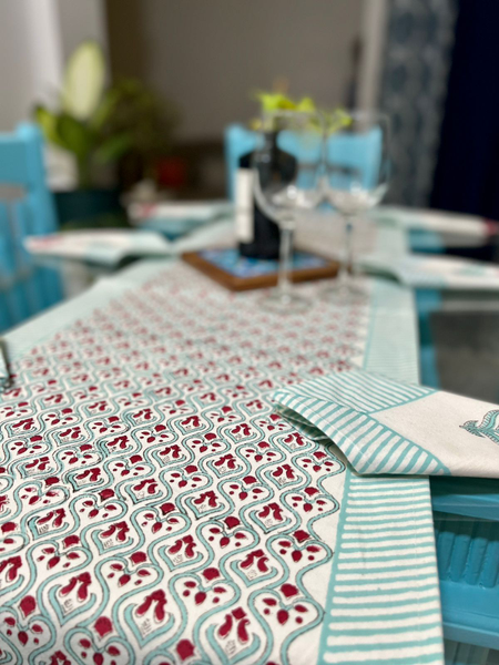 With a smooth purelinenweave captured embraced in soft pastel hues, our table runners are created to bring a delicate flair to your dininh spaces. From every viewpoint, our Block Printed table runner set can match with every cutlery like a long-lost live. These table runners are long lasting and easy to care for at home.