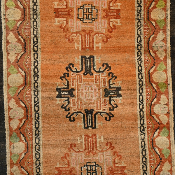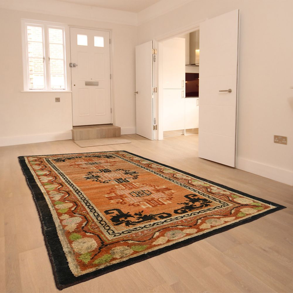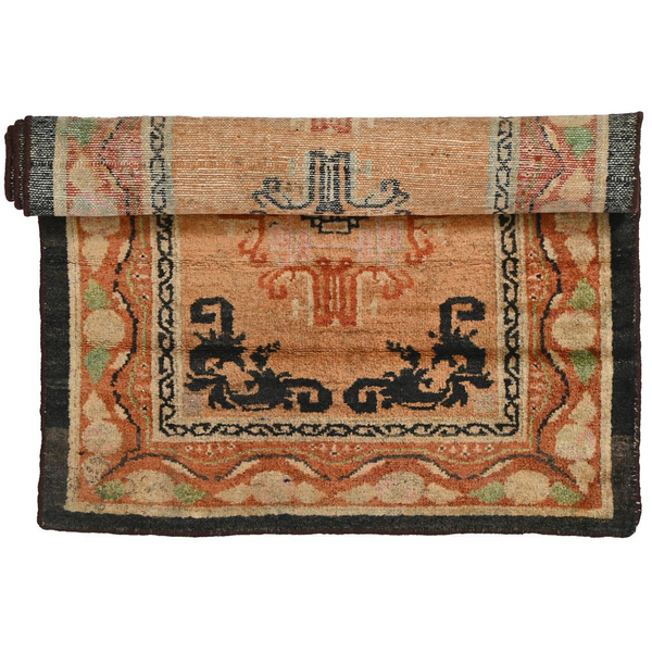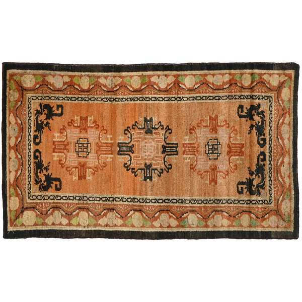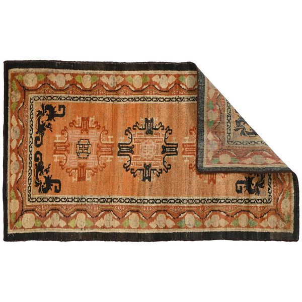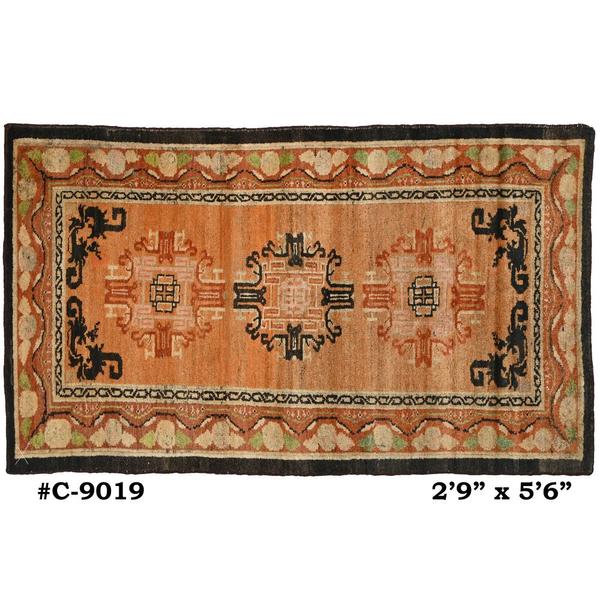 This antique Tibetan rug have been made from Tibetan Highland sheep wool.