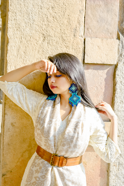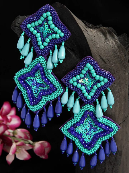 The handembroidered and handmade blue pearl earrings have been breaking trends all over and we are thrilled to offer only the best to you.