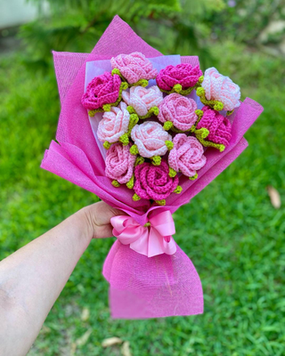 Handmade Crochet Pinkish Rose's Bouquet