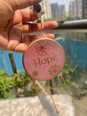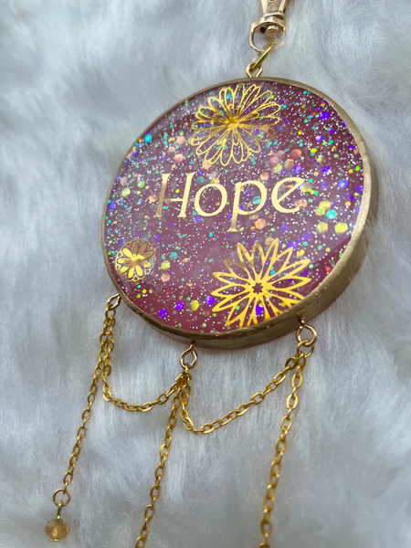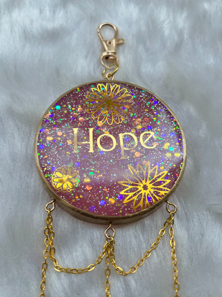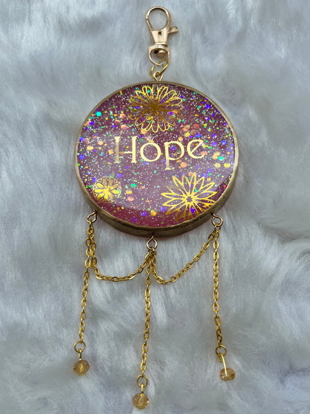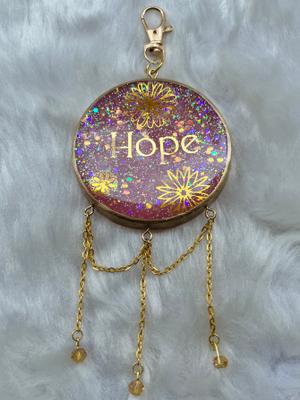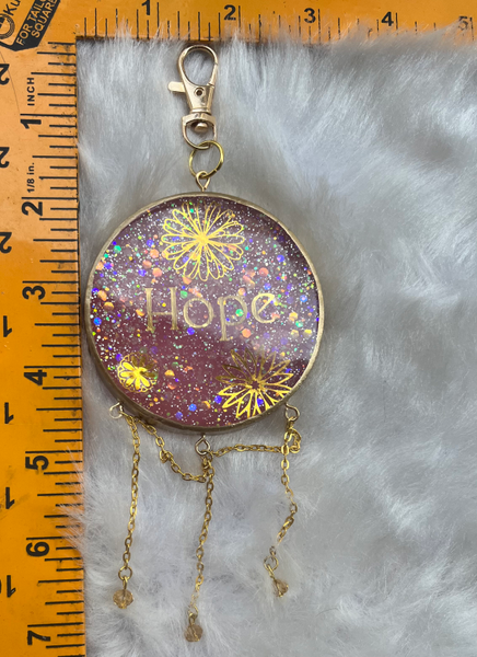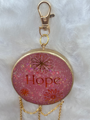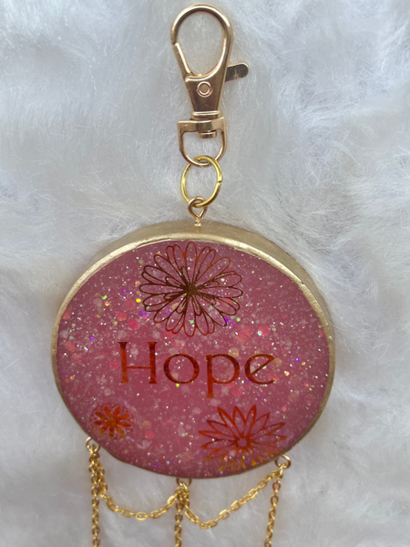This keychain has the words Hope on it with a glitterbackground which also makes it a great gifting option.