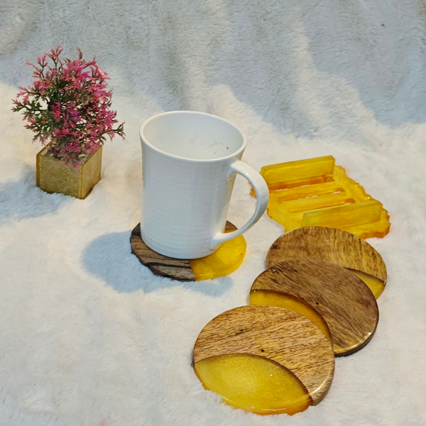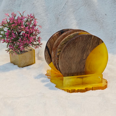 Whether you're looking for a functional addition to your living room or a thoughtful gift, our resin coasters with wooden stands are the perfect choice. Elevate your space with a blend of nature's beauty and artistic craftsmanship.