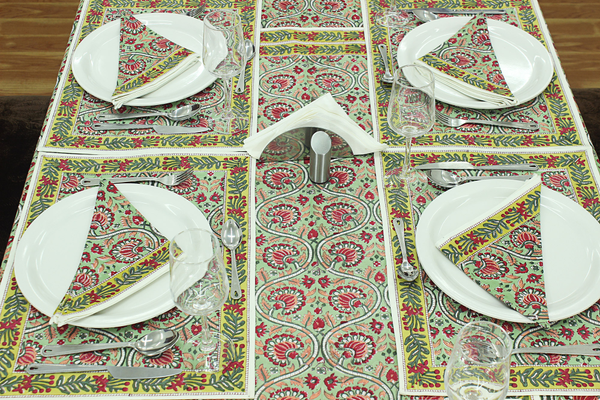 For Example, for a 4 seater table cover ordered, it would be a set of 4 napkins and 4 table mats.