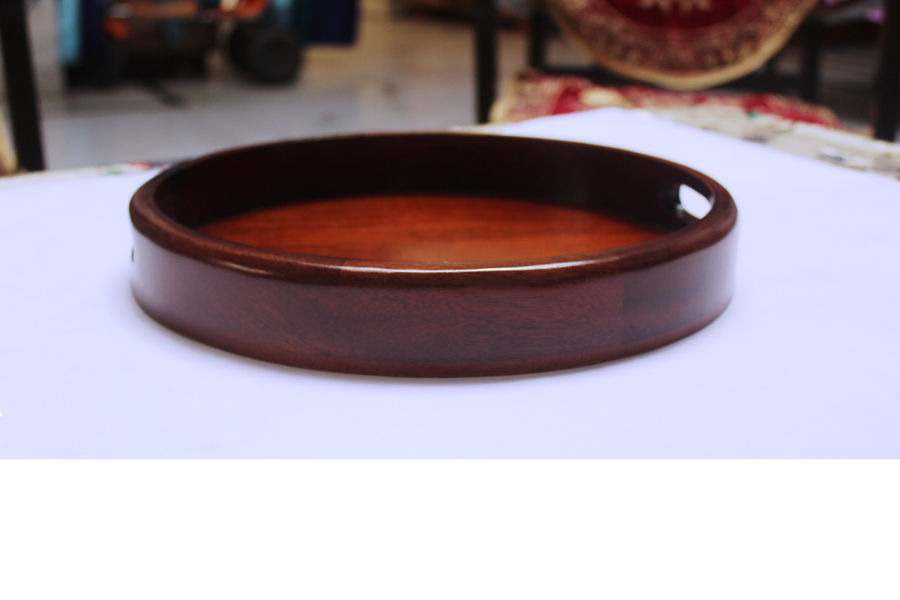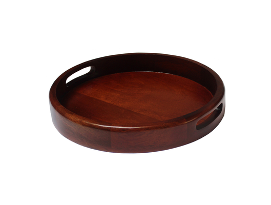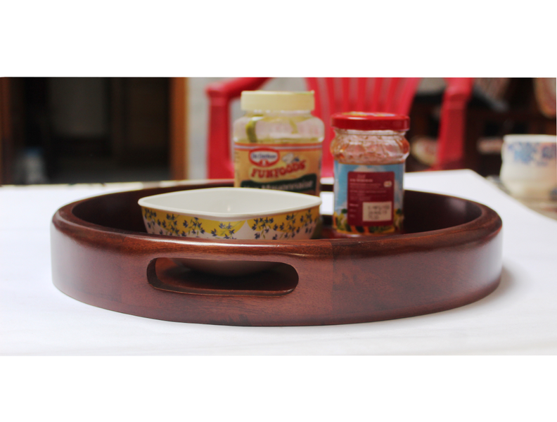 Handmade Wooden Round Serving Tray | Wooden Handle Mahogany Finish