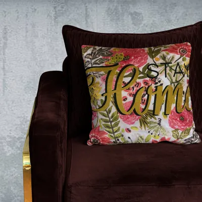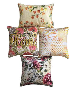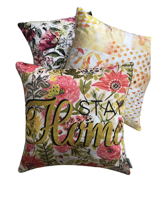 Memories of your happy place put in the cushion cover design with the beauty and innocence of childhood water colour effects. Each cushion cover is designed with its pretty flowers and vibrant colors reminds every one of the motto "Don't worry & Be Happy" The cushion cover provides a unique chic and style to your sofa, couch, windowsill or bed as you please. The crushed velvet fabric adds extra coziness and comfort to your place. The message "Stay home" remind us to unwind in our cozy and beautiful homes. Pair it with our similar cushion cover designs from the Tasseled Home Happy collection to give your couch or bed a complete new look. Ideal for both gifting and personal use