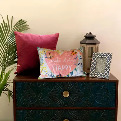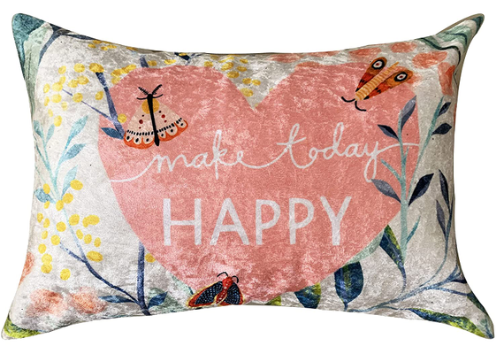 Happy Today Designer Velvet Cushion Cover