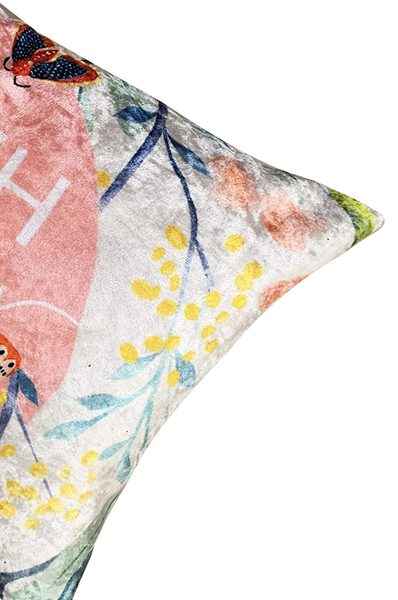 Memories of your happy place put in the cushion cover design with the beauty and innocence of childhood water colour effects. Each cushion cover is designed with its pretty flowers and vibrant colors reminds every one of the motto "Don't worry & Be Happy" The cushion cover provides a unique chic and style to your sofa, couch, windowsill or bed as you please. The crushed velvet fabric adds extra coziness and comfort to your place. Pair it with our similar cushion cover designs from the Tasseled Home Happy collection to give your couch or bed a complete new look. Ideal for gifting and personal use.